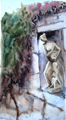 These are paintings done at Union Station in Los Angeles - two in the same morning. I took a Los Angeles Conservancy evening tour of Union Station last summer, so I know a bit more about it. I've taken long and short train rides to and from Union Station over the years. It's a good place, coming and going.